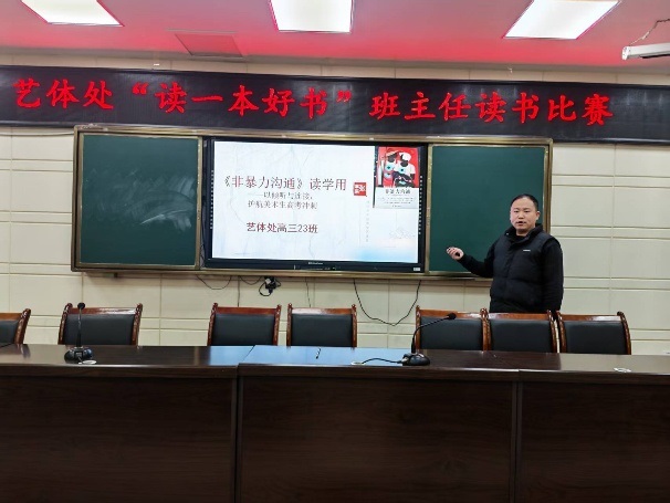 首先,高三班主任分享了各自的阅读心得与实践感悟。崔明伟老师结合《将来的你,一定会感谢现在努力的自己》一书,探讨如何引导学生树立长远目标,激发内在动力;翟祥彪老师分享《给孩子的五项学习帽》的启示,提出通过学习内驱力、情绪自控力、习惯自控力、学习竞争力、学习抗逆力五个维度提升学生的综合素质;孙洪峰老师则从《给青年班主任的建议》中提炼出体育文化在构建班级精神中实用技巧;张丰采老师借助《非暴力沟通》的理论,反思师生沟通中的语言艺术与共情理解;杨明明老师则从《懂心理,带好班》出发,强调心理学知识在班级问题干预和学生心理健康工作中的重要作用。每位老师的分享既有个人的深刻反思,也有对教育实践的生动诠释,展现了艺体处班主任队伍勤于思考、乐于探索的精神风貌。