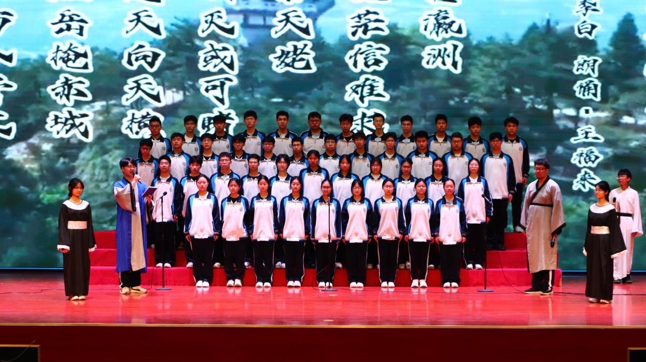 开幕式的重头戏是“经典诗文诵读比赛”的决赛。主持人首先介绍了本次比赛的评委组成及详细的评分规则。经过初赛的激烈角逐,来自高一、高二、艺体三个级部共计12个参赛班级按照赛前抽签顺序进行决赛。