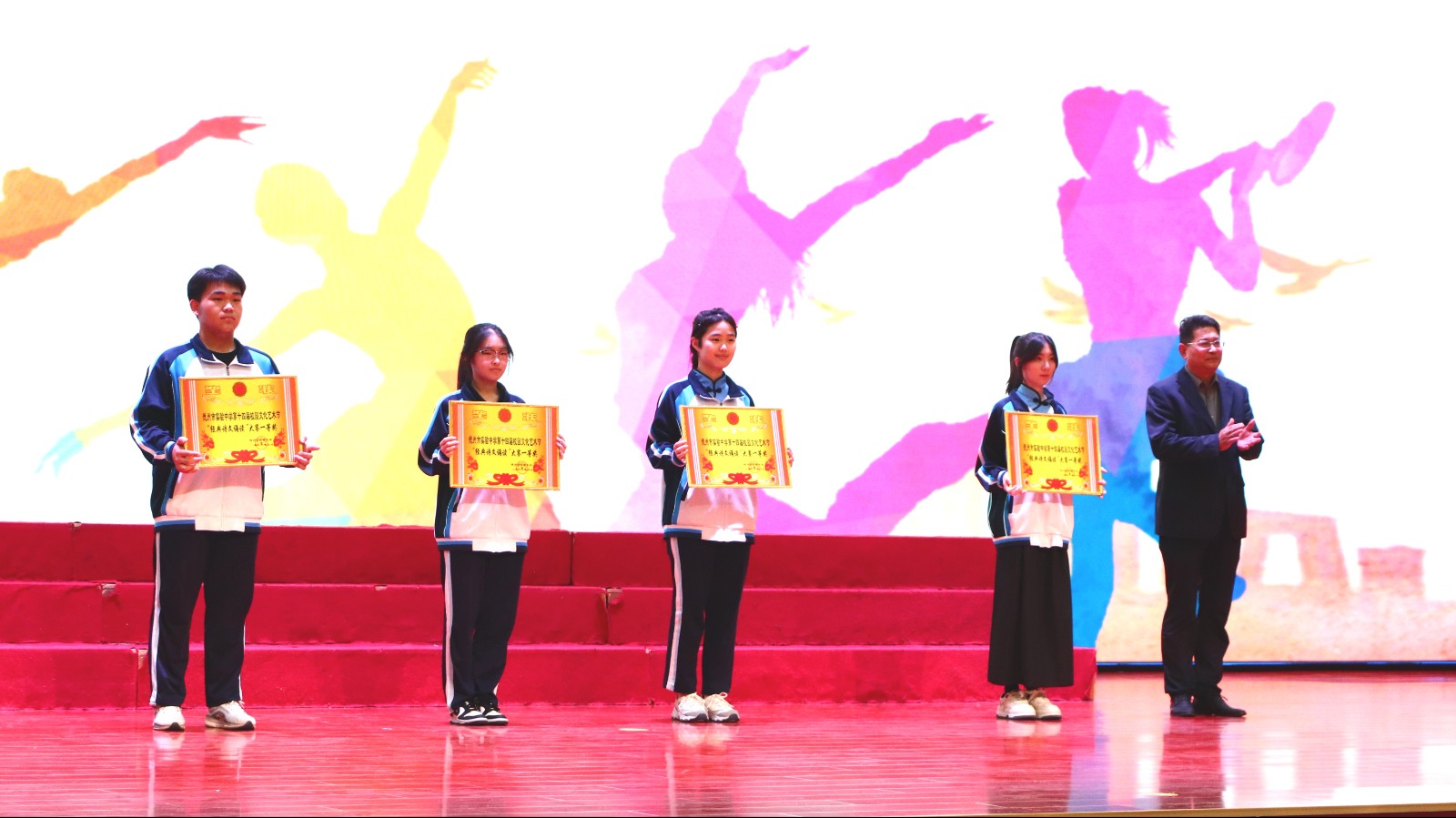 经过评委们严格评审,共决出一等奖、二等奖、优秀奖各四个班级。校领导赵洪金、张文忠、马勇分别为获奖班级颁奖。