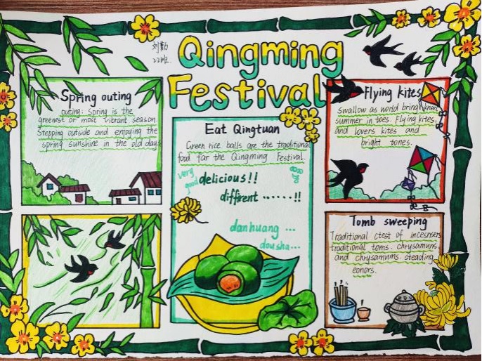 本次活动得到高一、高二年级学生的积极响应与踊跃参与。筹备过程中,同学们主动查阅各类资料,反复打磨文稿内容,用心开展创意构思,以英语为语言载体,围绕中国传统民俗、经典传统艺术等核心主题,进行手抄报版面设计与内容创作。创作中,春节屠苏酒里承载的阖家欢悦、清明踏青追思的民俗意蕴、各类传统民俗文化与民间艺术特色,都被同学们以流畅地道的英语语句生动呈现,实现了中华优秀传统文化与英语知识的巧妙融合。每一份手抄报都独具匠心、亮点纷呈,既充分展现了同学们扎实的英语语言表达功底,也真挚传递出新时代学子对中华优秀传统文化的由衷热爱与文化传承之心。
