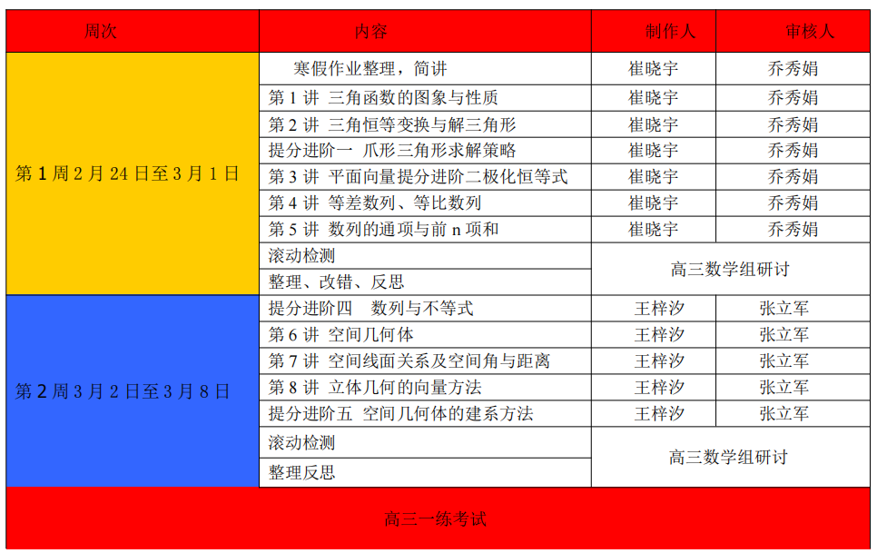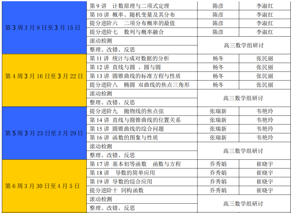 2025-2026 学年第二学期 高三数学下学期教学计划表