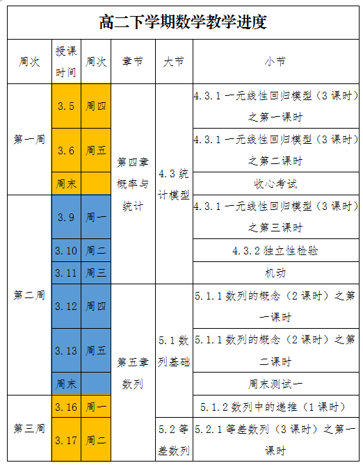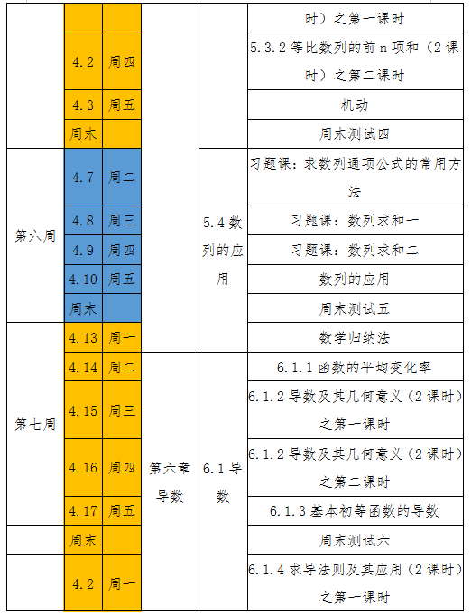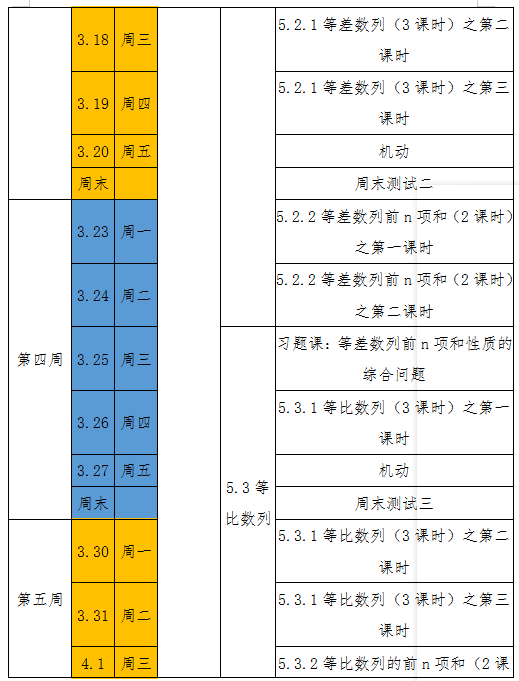 期中考试之后:(共25节),每周5节