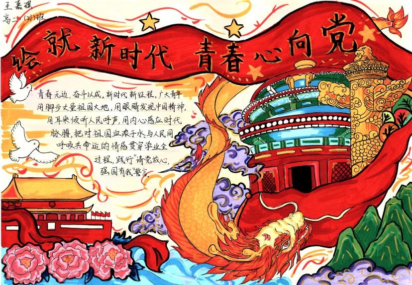 本次手抄报大赛以“绘就新时代,青春心向党”为主题,高一、高二艺体处全体同学踊跃参与。同学们通过走访调查、观看电视新闻和网络报道等多种途径搜集素材,运用画笔和文字,生动描绘出新时代中国的伟大成就、发展变迁和精神气象,抒发了对党、祖国和人民的深厚情感。
