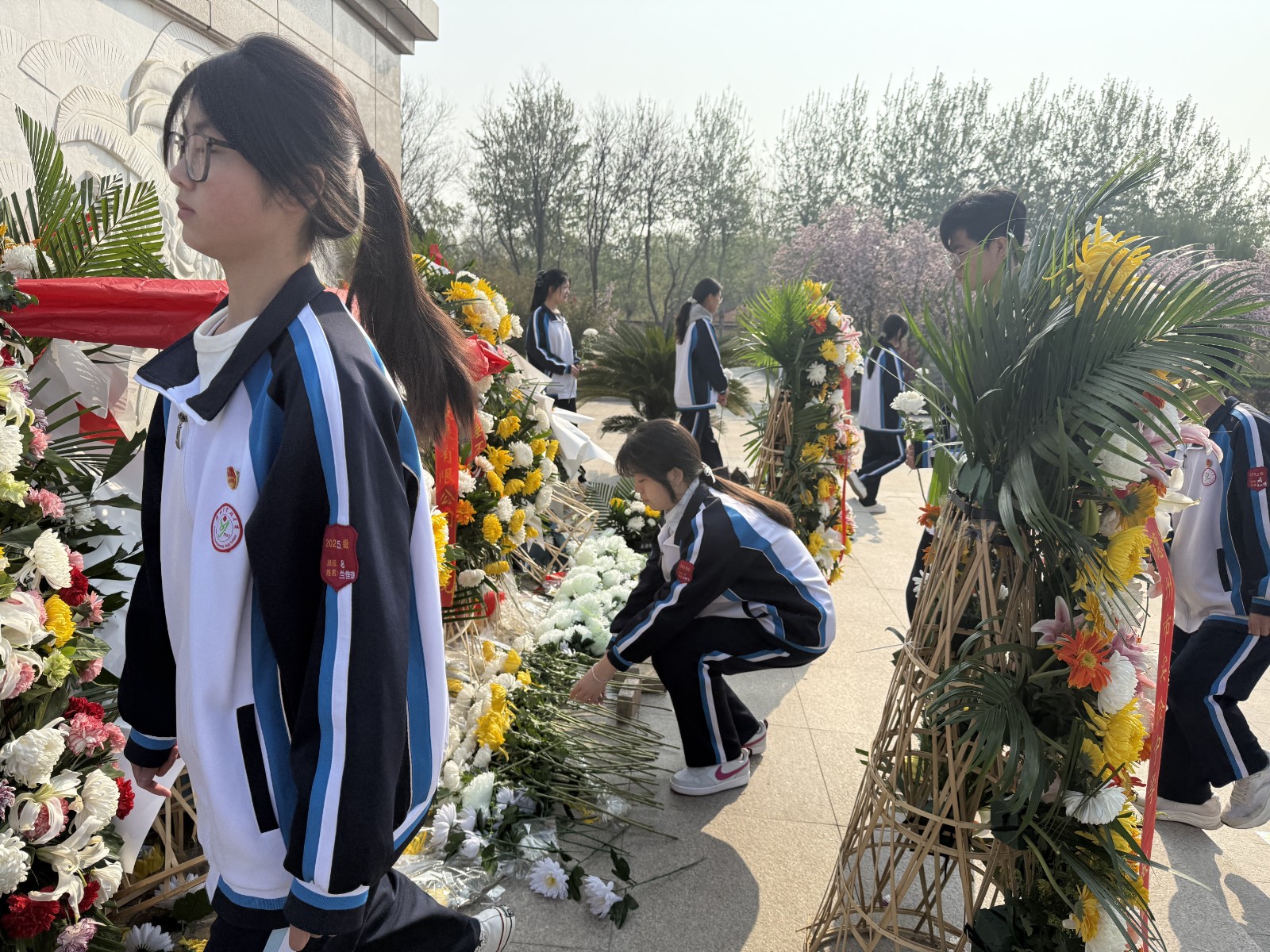 全体师生有序瞻仰了烈士纪念碑并献上鲜花。